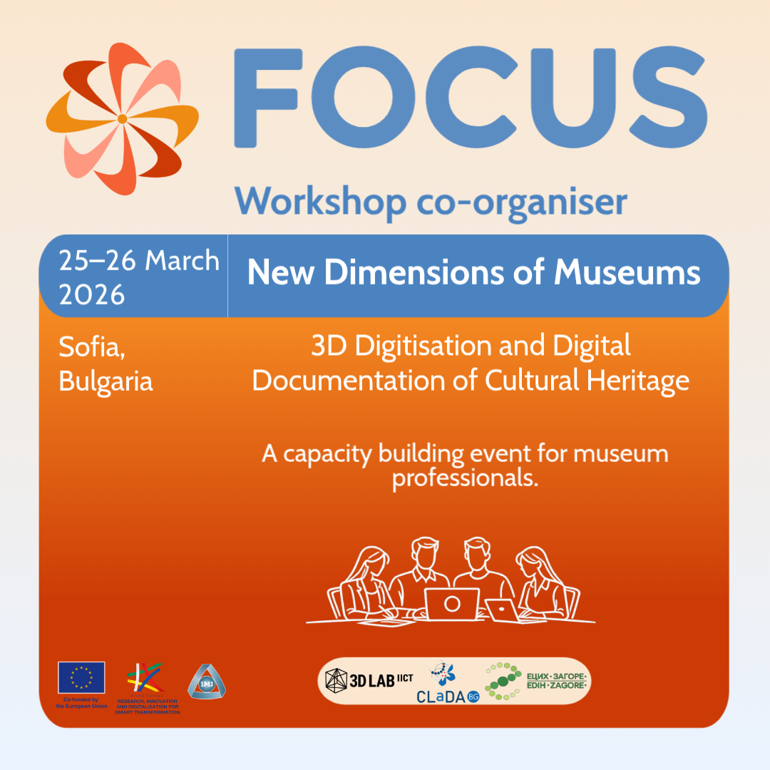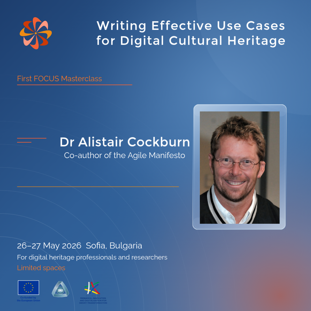 Solid Future(s) for Digital Heritage: Decentralising Access and Building TrustOur Next EventA session within the Solid Symposium 2026📅 Date: 1 May 2026🏁 Start: 10.35 h🎤 Working Language: EnglishDetailsWriting Effective Use Cases for Digital Cultural Heritage Delivered with Dr Alistair Cockburn (First FOCUS Masterclass)Our Next Event📅 Date: May 26–27, 2026📍Sofia, Bulgarian Academy of Sciences, 15 Noemvri St., Ivan Evstatiev Geshоv Hall🎤 Working Language: EnglishDetailsFAIR Language Resources in NLP: Stewardship, Reuse and Long-Term SustainabilityFuture EventWorkshop at CLIB 2026 (Satellite Event organised by FOCUS ERA Chair)📅 Date: 7 September 2026📍 Sofia, Bulgaria🎤 Working Language: EnglishDetailsNew Dimensions of Museums: 3D Digitisation and Digital Documentation of Cultural HeritagePast Event📅 Date: March 25–26, 2026📍 Sofia, ICCT, 2 Acad. G. Bonchev Str., Sofia 1113🎤 Working Language: BulgarianDetails